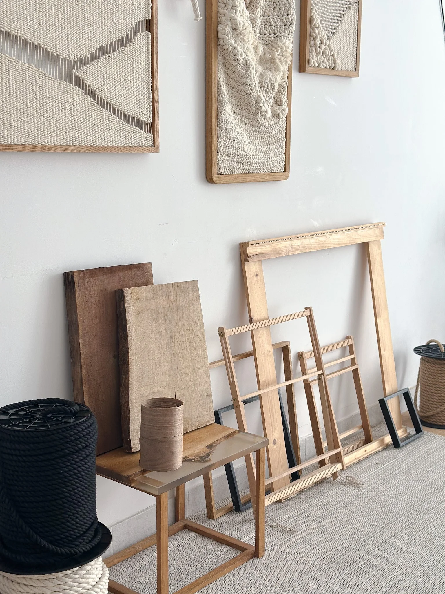 From their home studios in Portugal, they craft soulful, sculptural pieces in fiber and wood, each made with care, intention, and deep respect for natural materials.