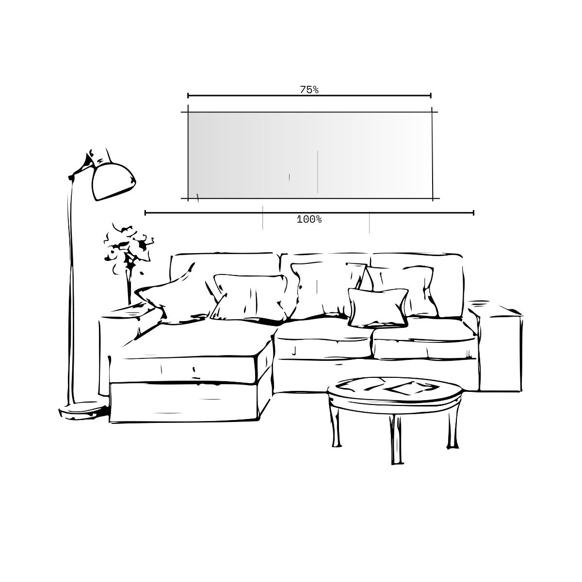 NOTE: While we often use the sofa as the primary example, these proportions apply to any 'anchor' piece—whether it’s a sideboard in your dining room or the headboard in your master suite.