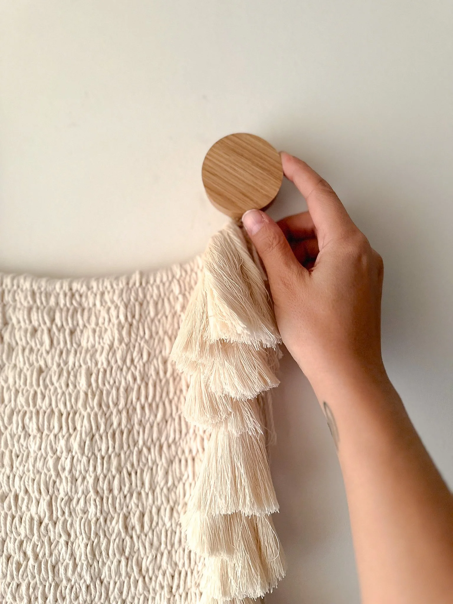HANDWOVEN HANGING FROM OAK HOOKS