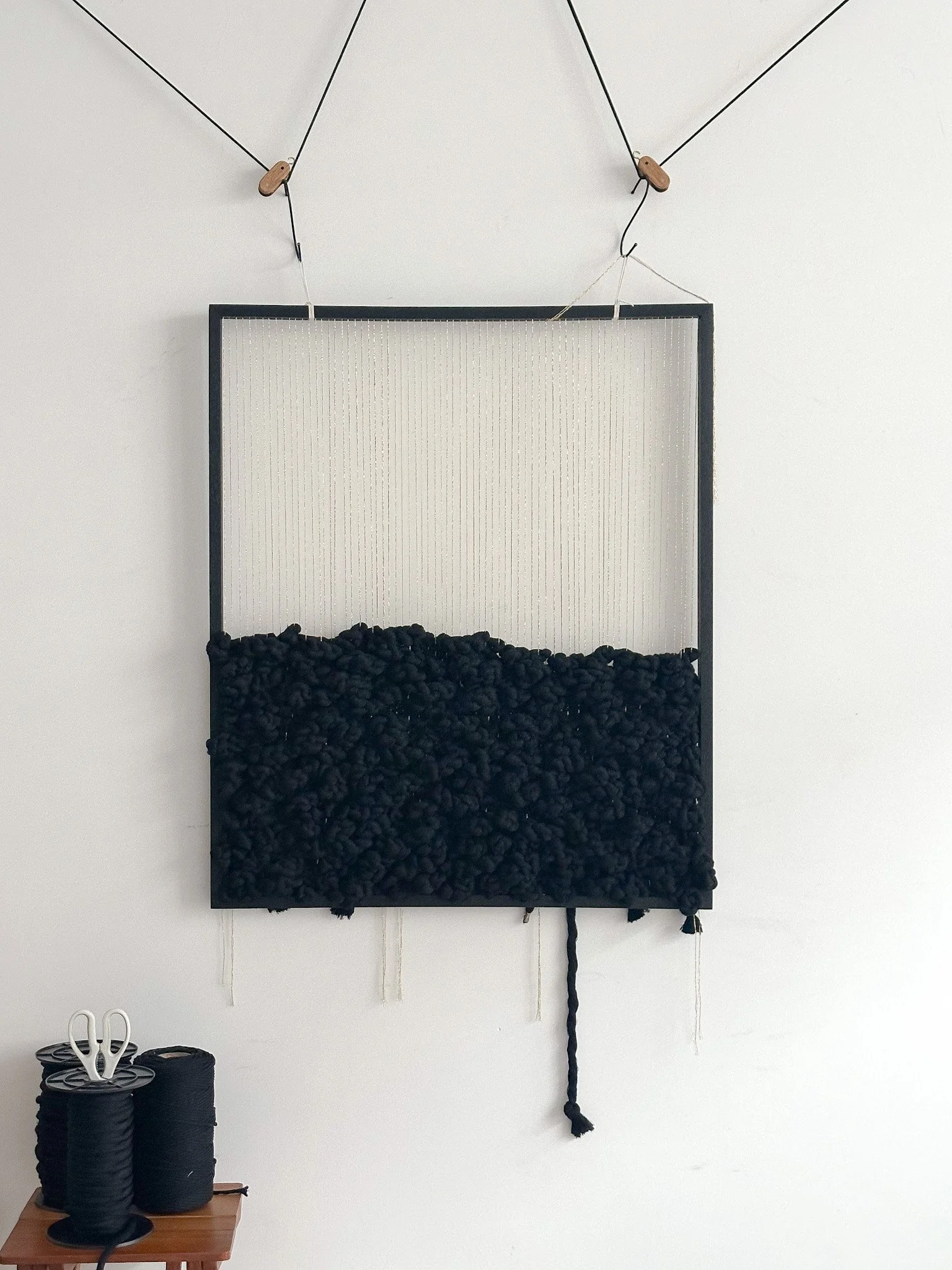 Prash hand-selects each timber specimen from local suppliers for its grain and character, while Ana thoughtfully prepares the fibers.