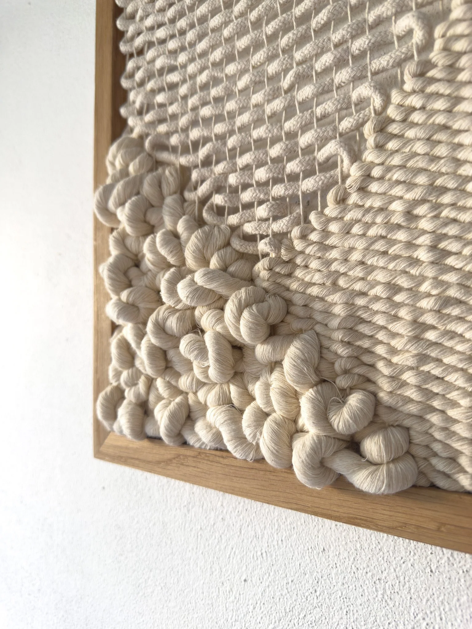 It is an exploration of the artist’s philosophy of painting with texture—where depth, shadow, and perspective are created not through pigment, but through the weight, direction, and tension of the fiber.